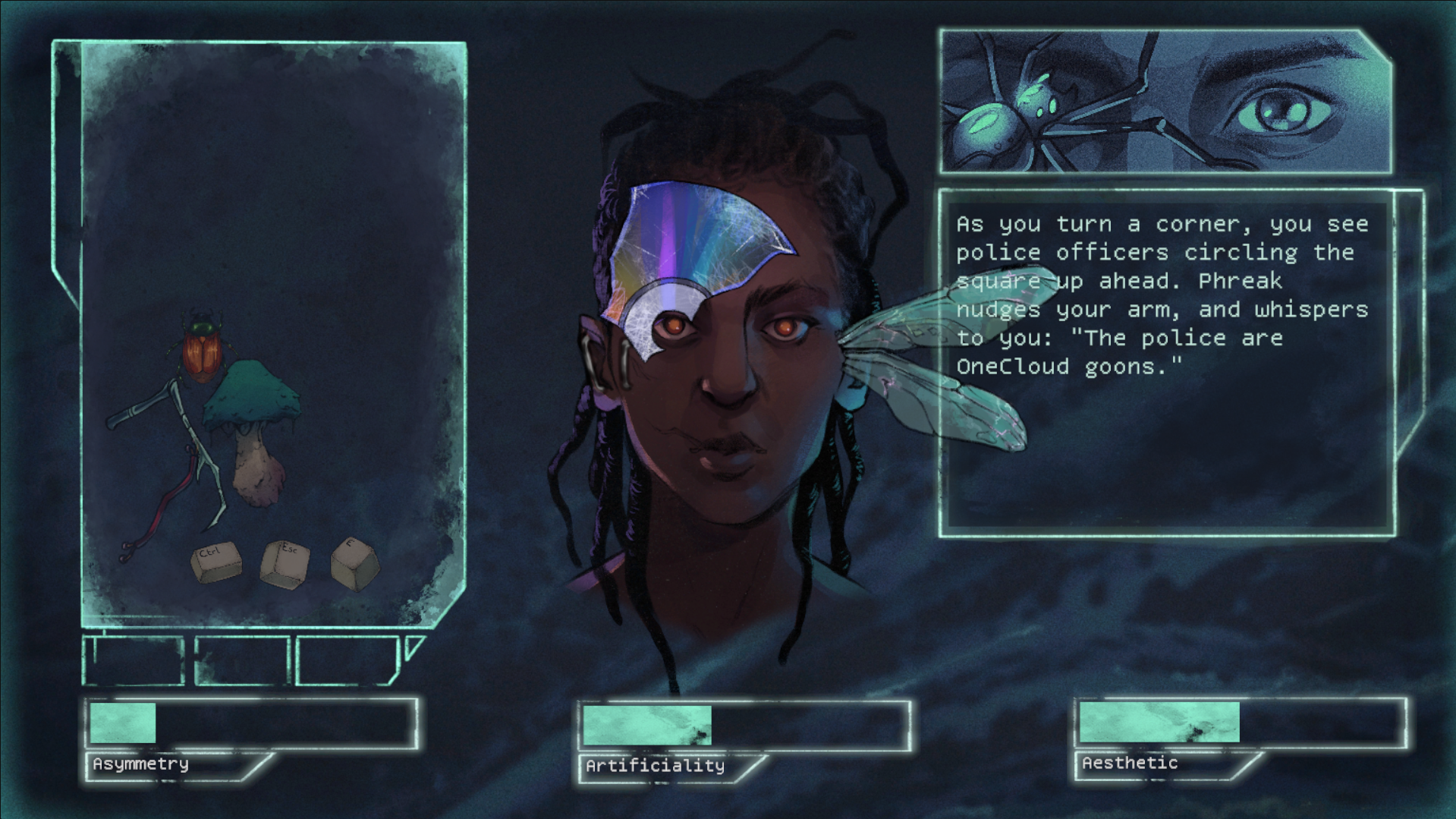Suncatcher is a short 2D interactive narrative in which you navigate a cyberpunk city in order to complete a dangerous mission!